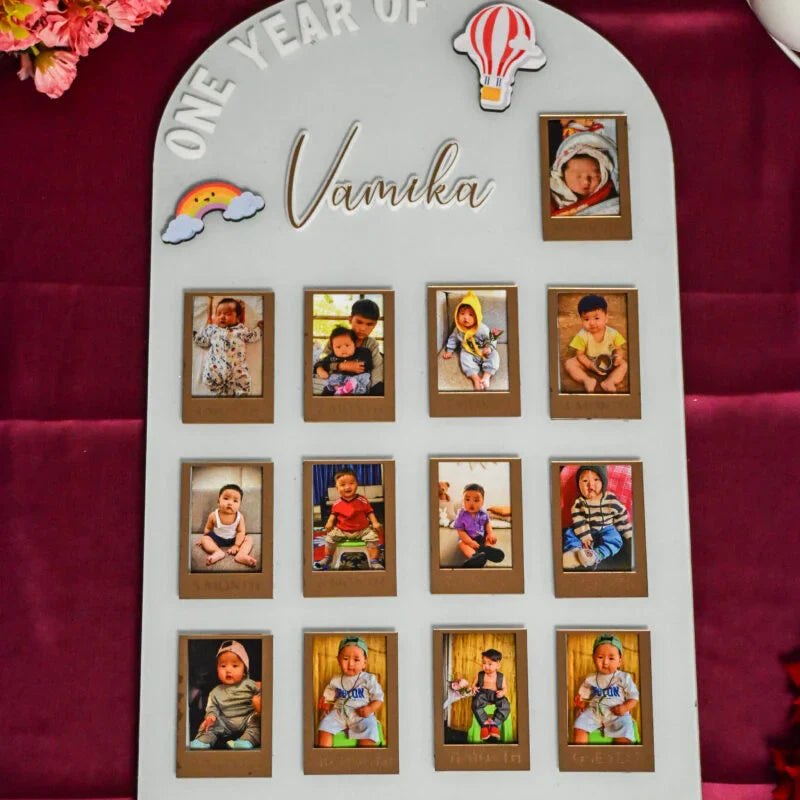 Made with exceptional craftsmanship, the board features a sturdy high-quality MDF base, ensuring durability that lasts for years. The acrylic customizations add a glossy, premium touch—creating a modern, luxurious look that instantly elevates your space. Each month has its own dedicated space to hold photos from newborn to 12 months, capturing the growth of your little one in a visually stunning timeline you’ll treasure forever.